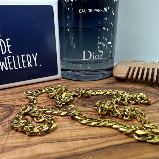 18k Miami Cuban Chain - Chunky Gold Chain Necklace for Men - Mens Gold Chain Real Gold Waterproof Chain - 60cm -Men's Jewelry Gold - B008